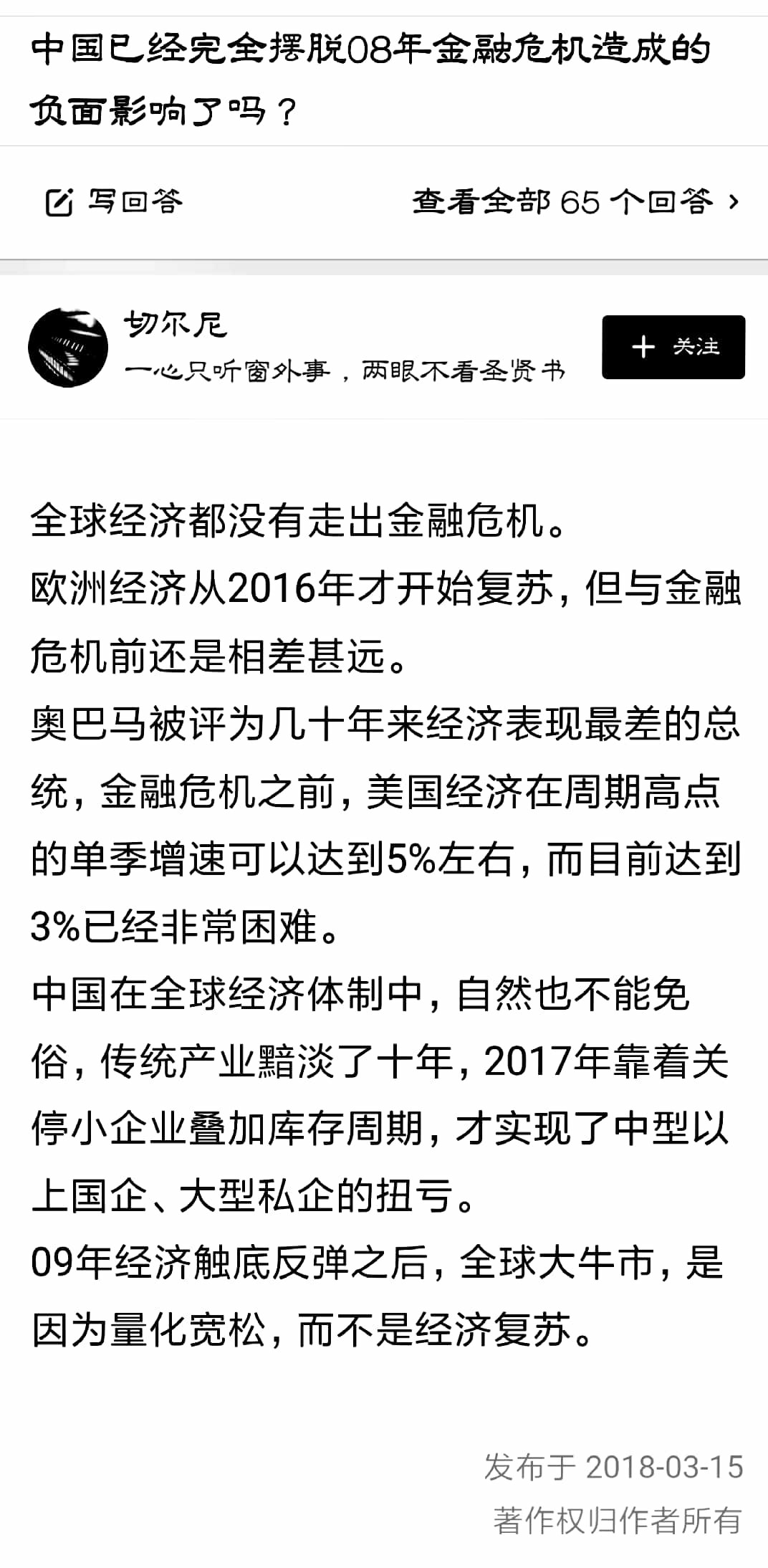 我下面要放一个惊雷: 全世界进入长期普遍的经济衰退,如西班牙青年失业率为45%,是中国”撅起”造成的。有些外国人意识到了这一点,如特朗普,但大部分还没意识到,这是好事,不然中国就很难混了。